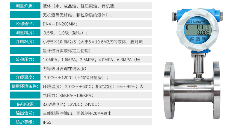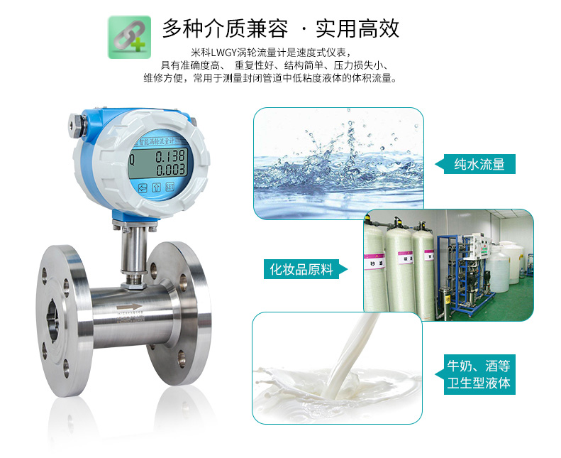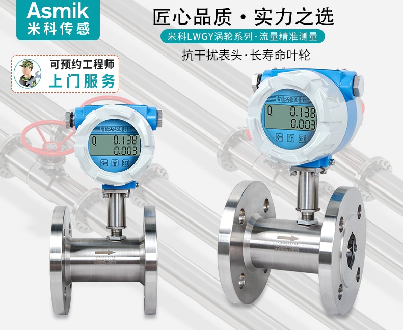 LWGY-MIK系列液體渦輪流量計是一種速度式儀表,它具有準確度高、重復性好、結構簡單、壓力損失小、維修方便等優點,用于測量封閉管道中低粘度液體的體積流量。在石油、化工、冶金、供水、造紙等行業中具有廣泛的應用。
