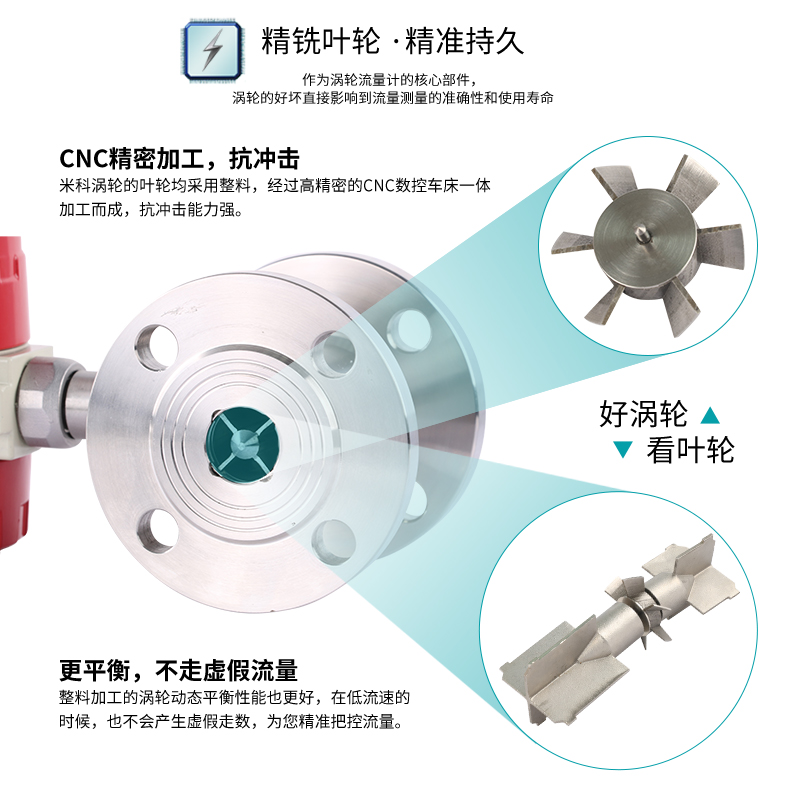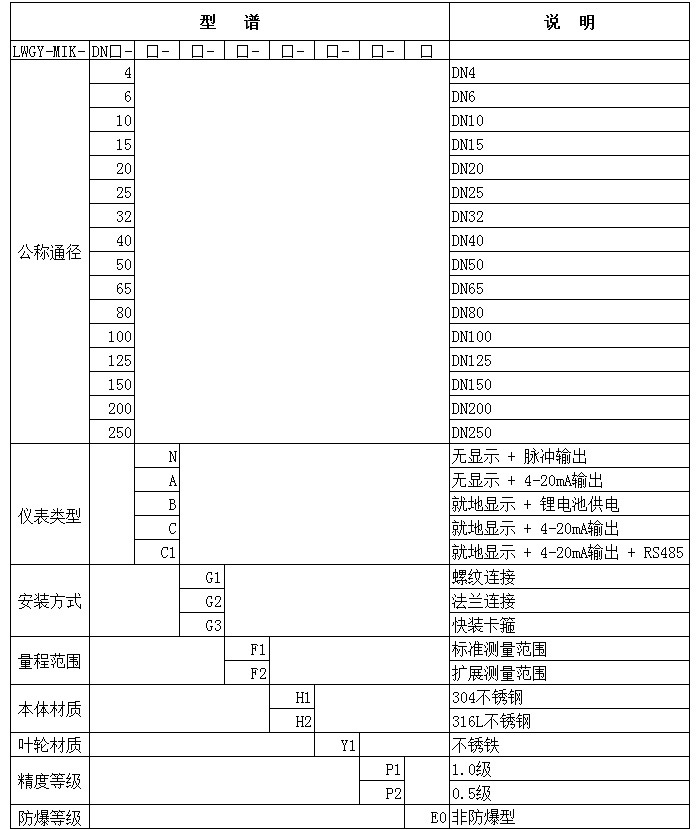 溫馨提示:渦輪流量計選型參數:介質,口徑(流量范圍),壓力,溫度,顯示方式等等。