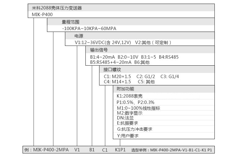 MIK-P400型工業(yè)型壓力變送器采用OEM全焊接壓力芯體,微型放大器處理電路。零點量程可遷移。其安裝接口形式,即可根據(jù)用戶的要求加工,可提供與其他品牌變送器兼容的規(guī)格。該系列產(chǎn)品廣泛應(yīng)用于工業(yè)過程控制、液壓設(shè)備、化工等行業(yè),針對工業(yè)現(xiàn)場環(huán)境比較惡劣的情況該產(chǎn)品有比較明顯的優(yōu)勢。